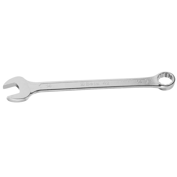 The 42 series of Combination Wrenches from Beta Tools have one open end (15 degree angle) and one offset 12-point box end. High-Strength, forged and tempered. Provides superior access. Precision fit with fasteners. The rough textured finish looks great and hides scratches. Both ends fit fasteners with a 28 hex.