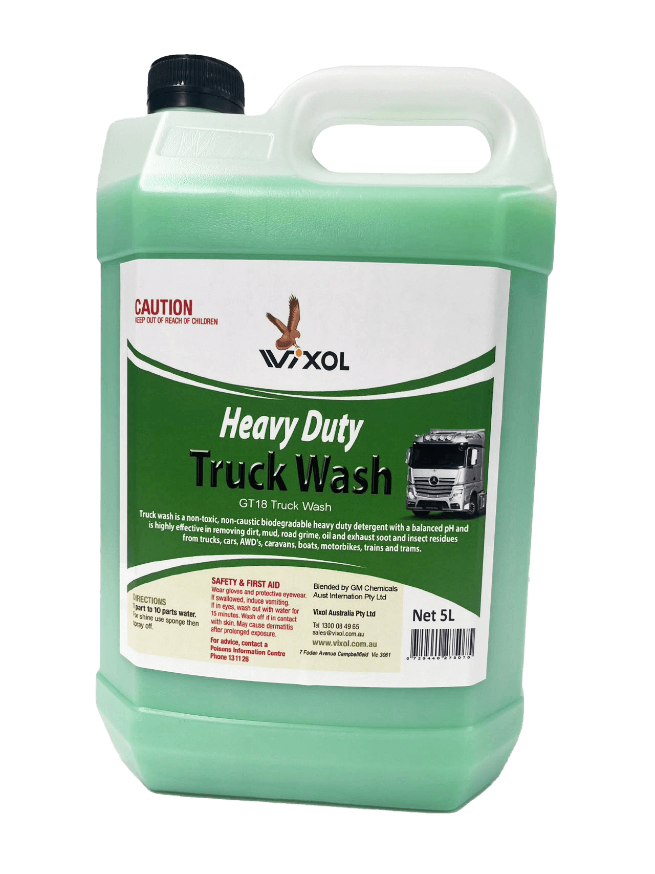 Truck wash is a non-toxic, non-caustic biodegradable heavy duty detergent with a balanced pH and is highly effective in removing dirt, mud, road grime, oil and exhaust soot. It may safely be used to clean paint work, chrome, rubber, windscreens, fibreglass, aluminium, vinyl and most washable surfaces. It will not affect paint and, being free rinsing , will not cause streaking.